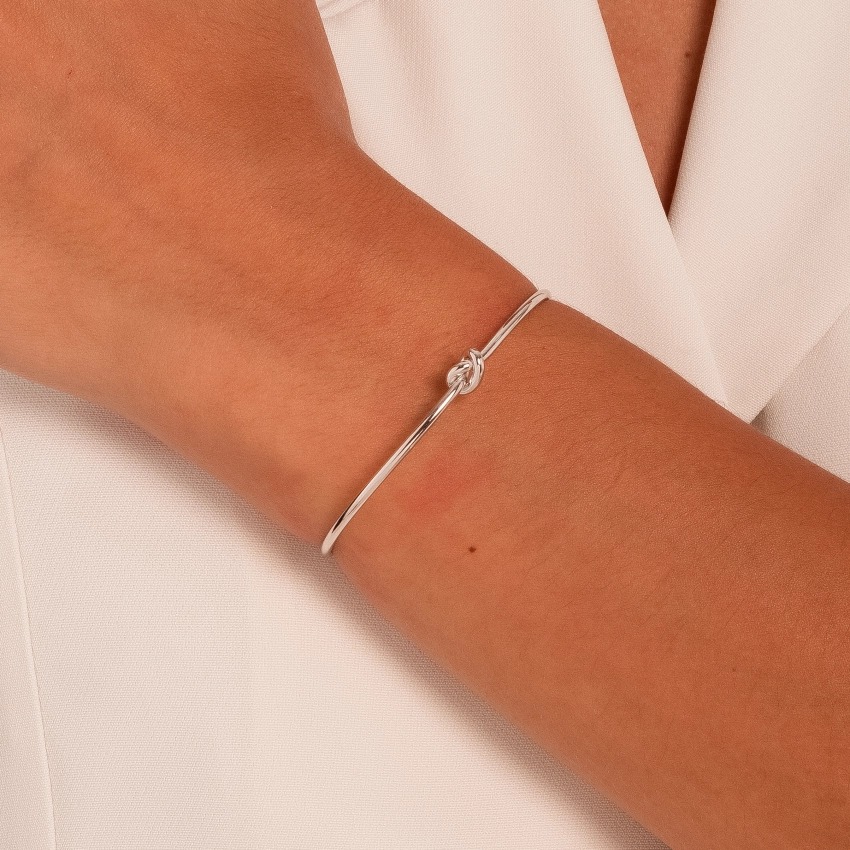 Bracelete Nó em Ródio: um toque de sofisticação discreta para o seu pulso. O detalhe em nó central traz charme e elegância, enquanto o acabamento polido garante brilho duradouro. Ideal para looks do dia a dia ou para complementar produções mais refinadas com personalidade.