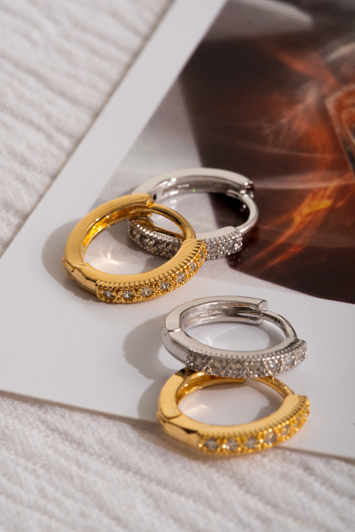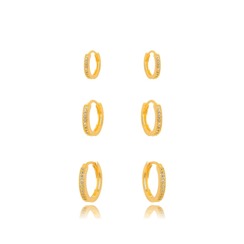 Design: trio de brincos cravejados, delicados e minimalistas, perfeito para usar em conjunto ou combinado com outros acessórios.